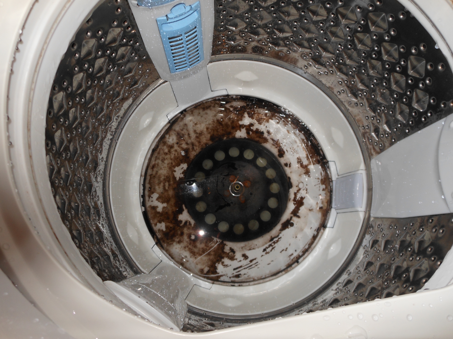 洗濯機を分解し、洗濯槽に繁殖したカビや洗剤の残りカスなどの汚れを徹底的に清掃します。